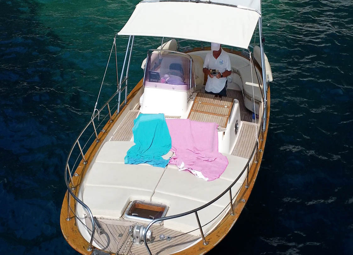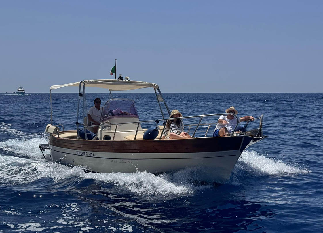 "Full Day 6/7 hour boat tour. Rent the boat to relax and swim without stress. At lunch enjoy on board Caprese sandwich and typical homemade cake by my wife Maria, or choose to stop at a typical restaurant on the coast. Maximum seven people for boat.