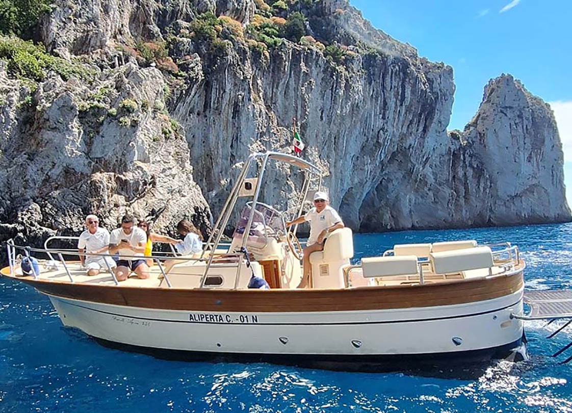 Tours include the excursion around the island of Capri to admire the most fascinating places such as the Green Grotto, the Faraglioni, the White Grotto, Marina Piccola, Cala del Rio, the Lighthouse, the famous Blue Grotto (optional stop, entrance fee, waiting times are long). You can choose the tour that suits you best and the time you want to spend on the boat.If you do not find the tour to your liking we can arrange a custom tour,with Capri Aliperta boat we will surely find a solution.What are you waiting for call now for information and book your tour for next summer.