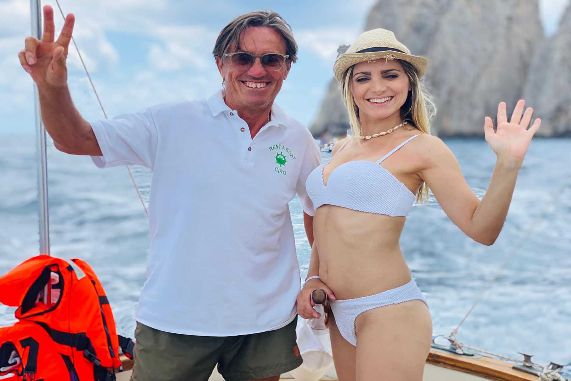 Ciao sono Ciro Aliperta: vivo a Marina Grande sono uno Zulù, così venivano chiamati gli abitanti della zona, sempre piedi scalzi e pantaloni corti. Mi trovi al porto nei pressi dellla stazione taxi e dell'edicola. Se volete fare un giro in barca a Capri solo da Ciro Aliperta potete andare. Con la mia simpatia e gentilezza vi racconterò la storia di Capri e vi farò ammirare le sue bellezze dal mare.La tipica barca (gozzo anaconda) comodo e sicuro.Ampio prendisole,scaletta,tenda parasole e frigo.Prenota il giro che piu' soddisfa oppure chiama per avere un giro personalizzato.Coccolare i clienti è una mia priorita',in barca troverete prosecco e stuzzichini.
